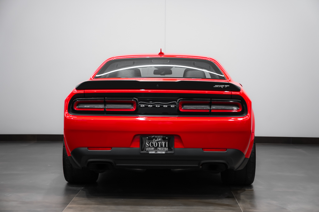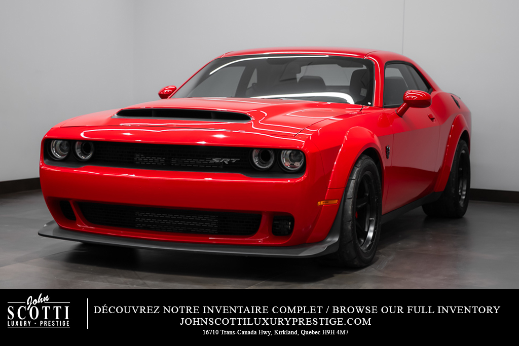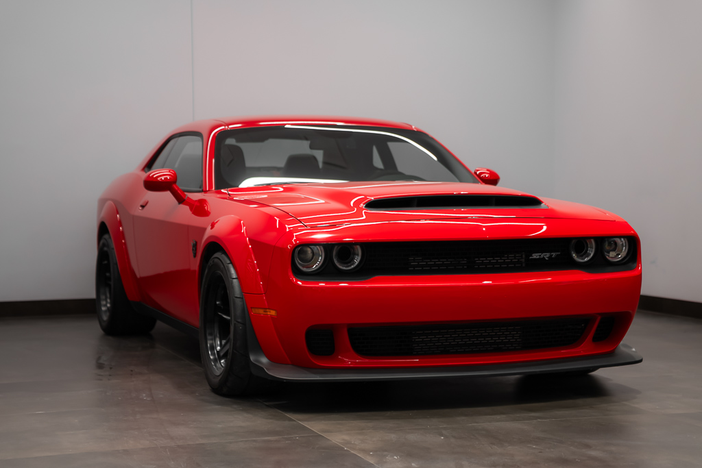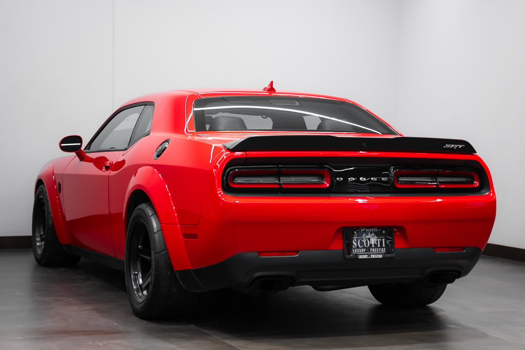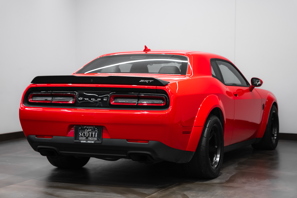 A beast in the streets. Make way for the 2018 Dodge Challenger SRT Demon, the first production car that can lift its front wheels off the ground under hard acceleration. The heart of the Demon resides in its supercharged 6.2-liter V8 engine, where 840 horsepower is at the ready with the help of race gas. Revel in the record-setting acceleration of this devilishly good-looking muscle car. The Demon sends you soaring at supernatural speeds, reaching 60mph in a mere 2.3 seconds. It is equipped with two keys, each providing access to different levels of power – the black key is restricted to 500 horsepower, the same as obtained when operating in Eco mode; the red key unlocks access to the automobile's full potential. Unleash the monster in you with the 2018 Dodge Challenger SRT Demon. 👹