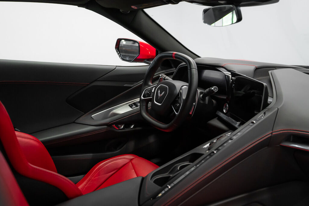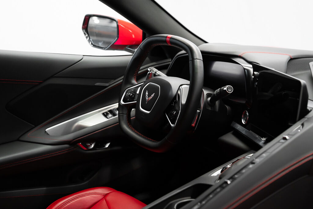 Rule the road in the 2021 Chevrolet Corvette 1LT Stingray. This vehicle brings together supercar performance, exotic aesthetics, and everyday drivability. Its commanding red exterior reveals sculpted sides, sharp angles, and swooping air intakes. The 2021 Chevrolet Corvette 1LT Stingray is the first ever mid-engine Corvette, enhancing traction, grip, and balance. It rockets from a standstill to 60mph in under three seconds, reaching a top speed of 194mph. Inside, you'll find a spacious two-seat cabin with black leather upholstery and red stitching. A front trunk offers ample space for your belongings. Travel swiftly, safely, and in style with the 2021 Chevrolet Corvette 1LT Stingray.❤️🔥