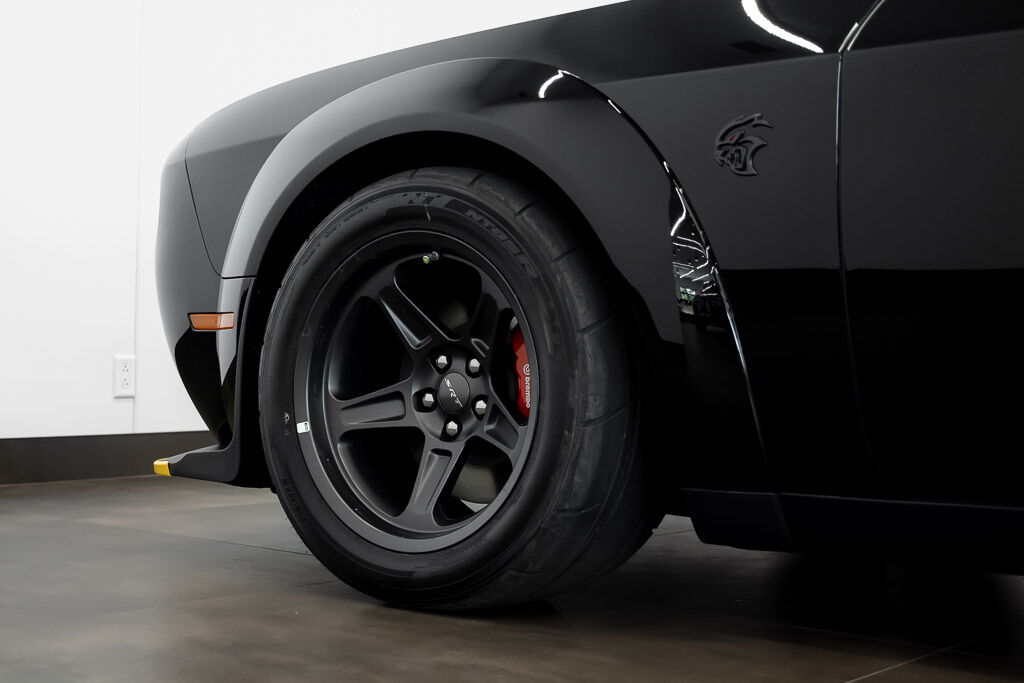The 2021 Dodge Challenger SRT Super Stock is a street-legal drag car built for straight-line speed. Powered by a supercharged 6.2L HEMI V8 producing 807 horsepower and 707 lb-ft of torque, it sprints from 0 to 60 mph in about 3.25 seconds and runs the quarter-mile in 10.5 seconds. It features drag radial tires, a Widebody kit, launch control, and upgraded suspension, making it one of the fastest muscle cars available.