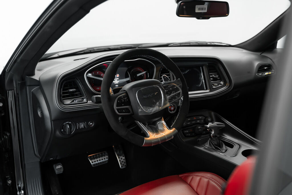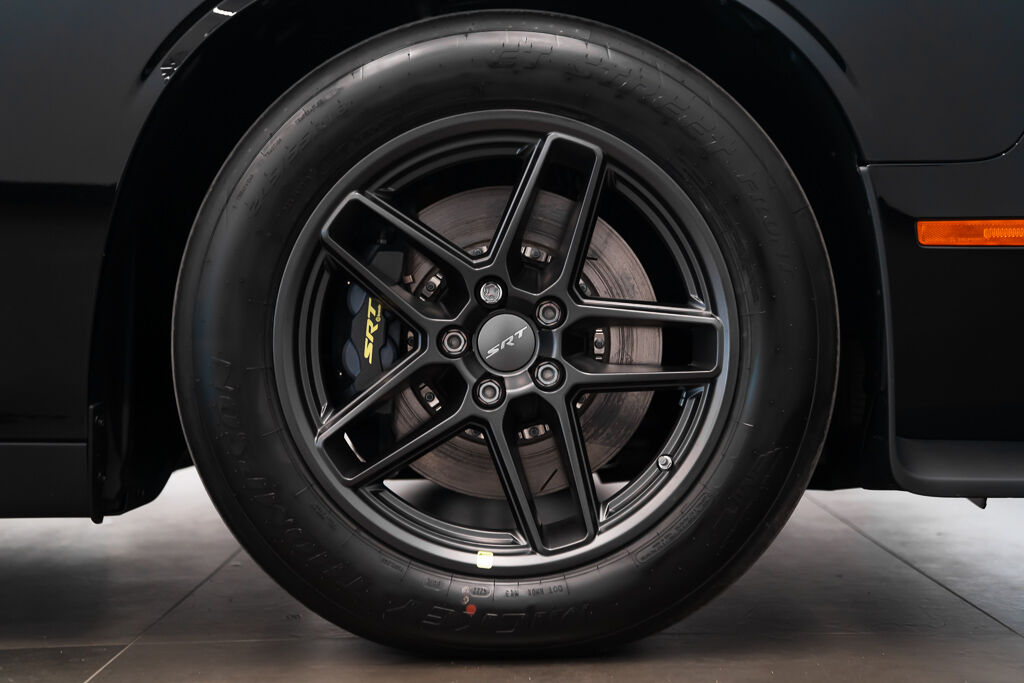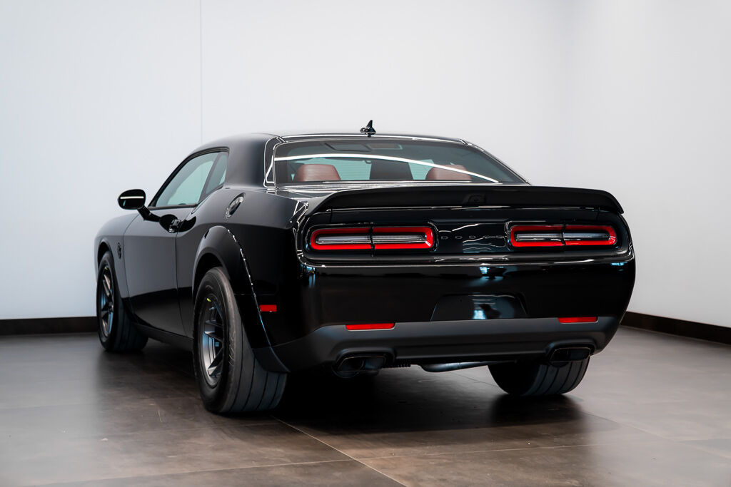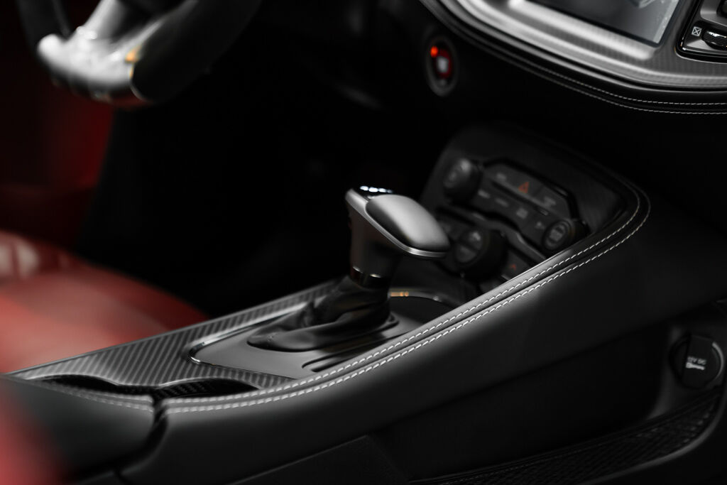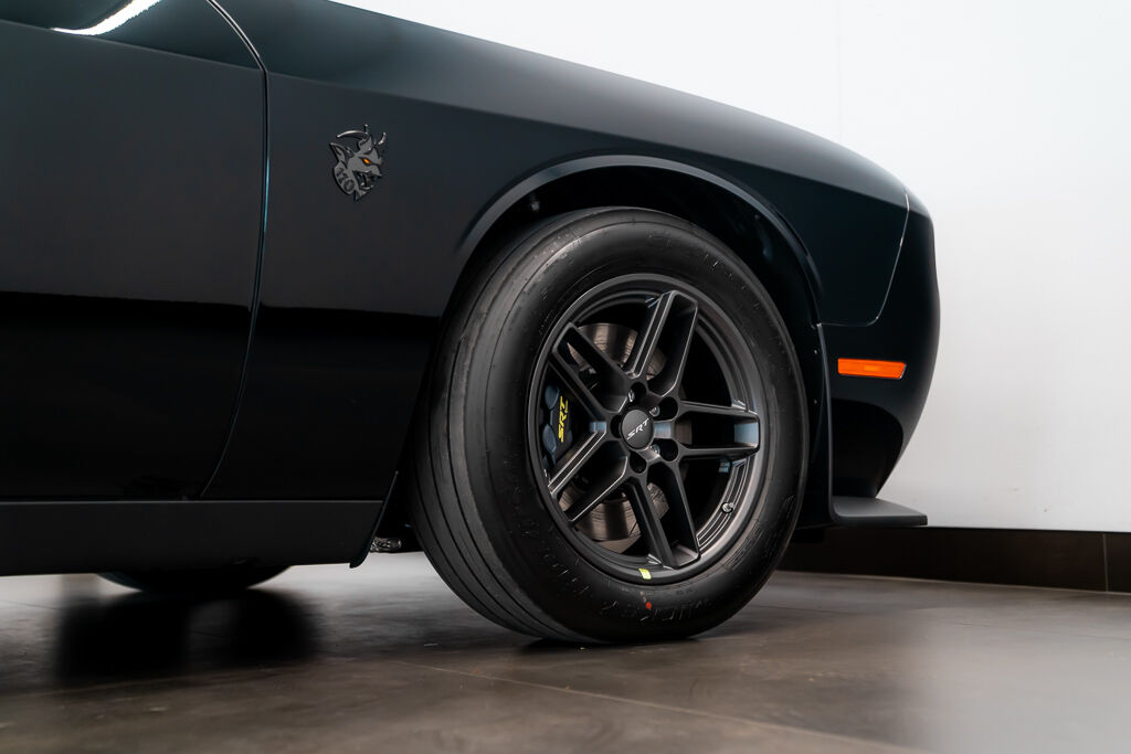 Under the hood, the Demon 170 features a supercharged 6.2L V8 engine with a 3.0L supercharger, 105mm throttle body, and high-flow fuel injectors. The drivetrain includes a TorqueFlite 8-speed automatic transmission, reinforced rear axle, and upgraded half shafts to handle the immense power. Its unique drag radial tires—315/50R17 at the rear and 245/55R18 at the front—are a first for a production car.