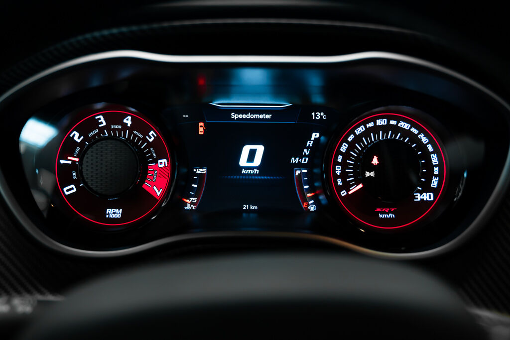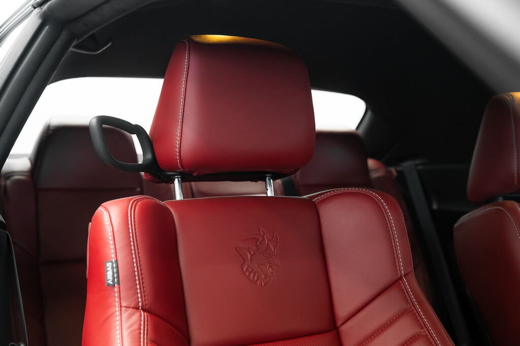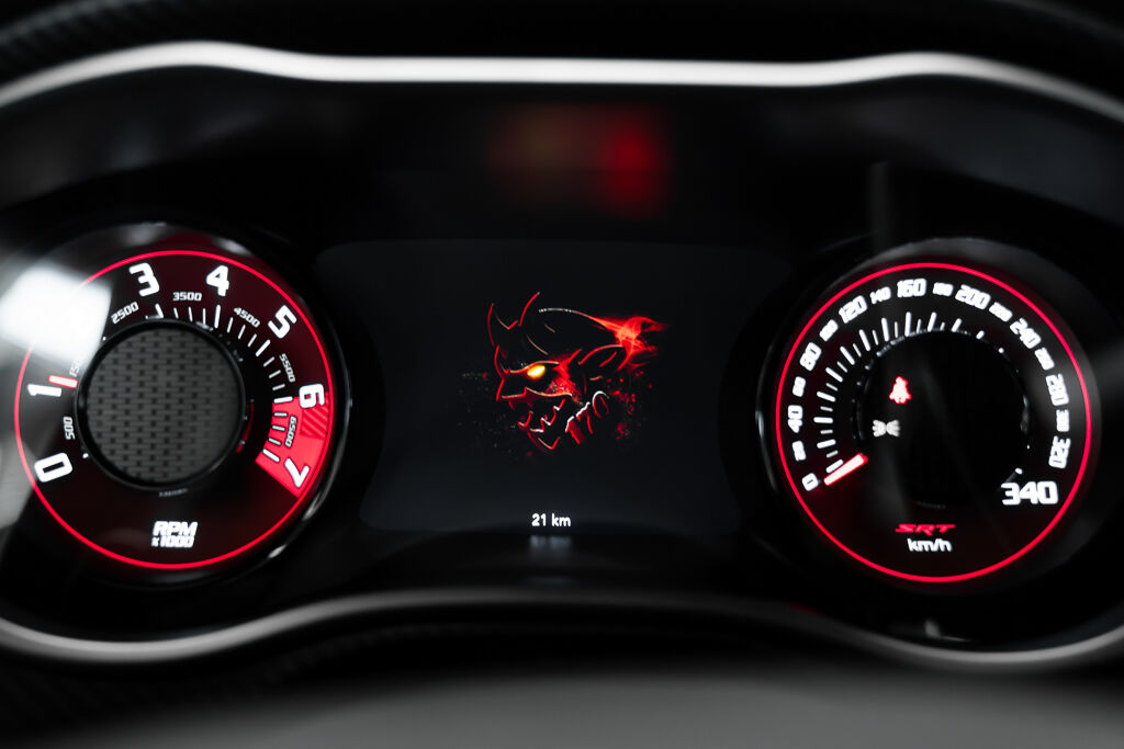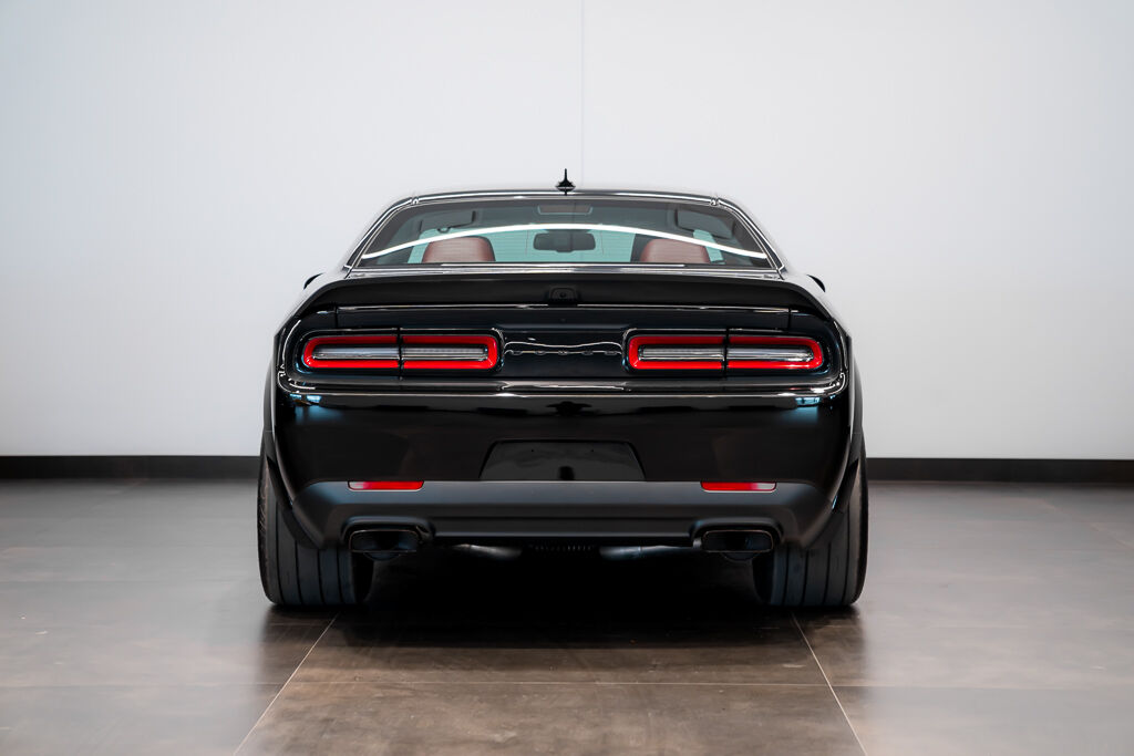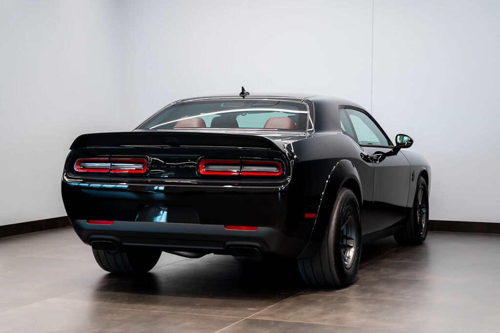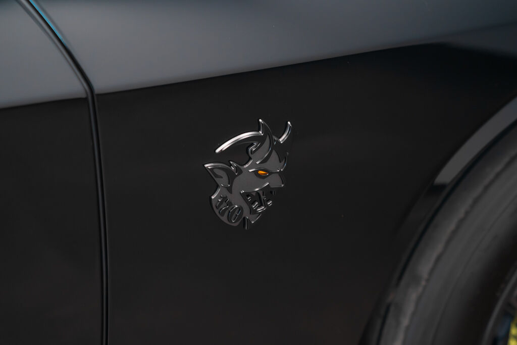 Under the hood, the Demon 170 features a supercharged 6.2L V8 engine with a 3.0L supercharger, 105mm throttle body, and high-flow fuel injectors. The drivetrain includes a TorqueFlite 8-speed automatic transmission, reinforced rear axle, and upgraded half shafts to handle the immense power. Its unique drag radial tires—315/50R17 at the rear and 245/55R18 at the front—are a first for a production car.