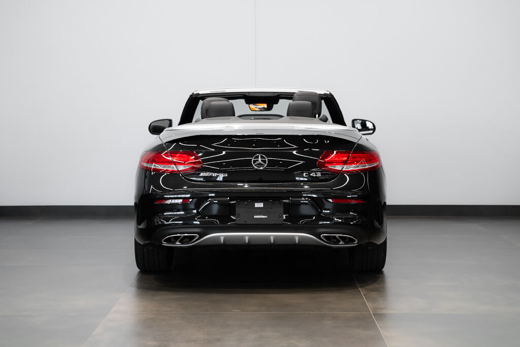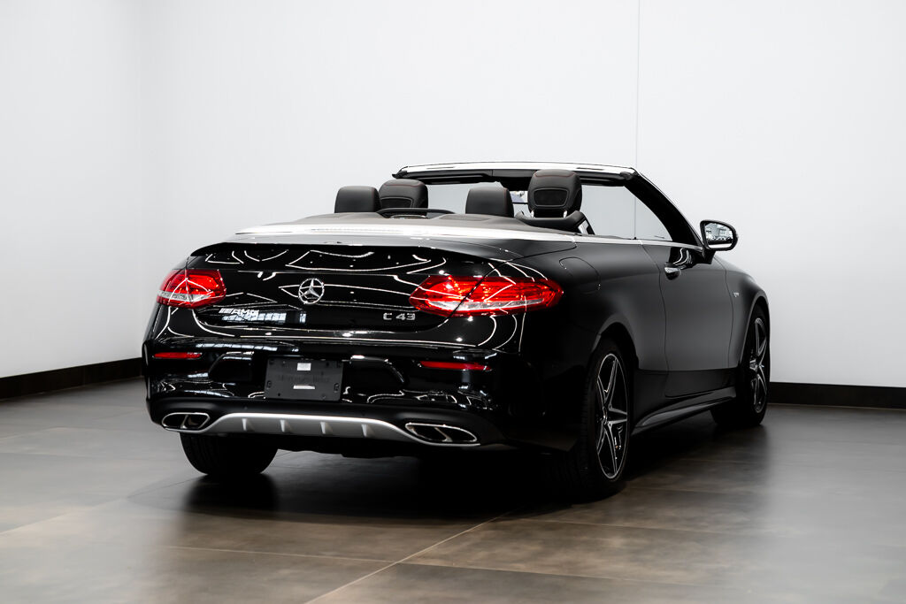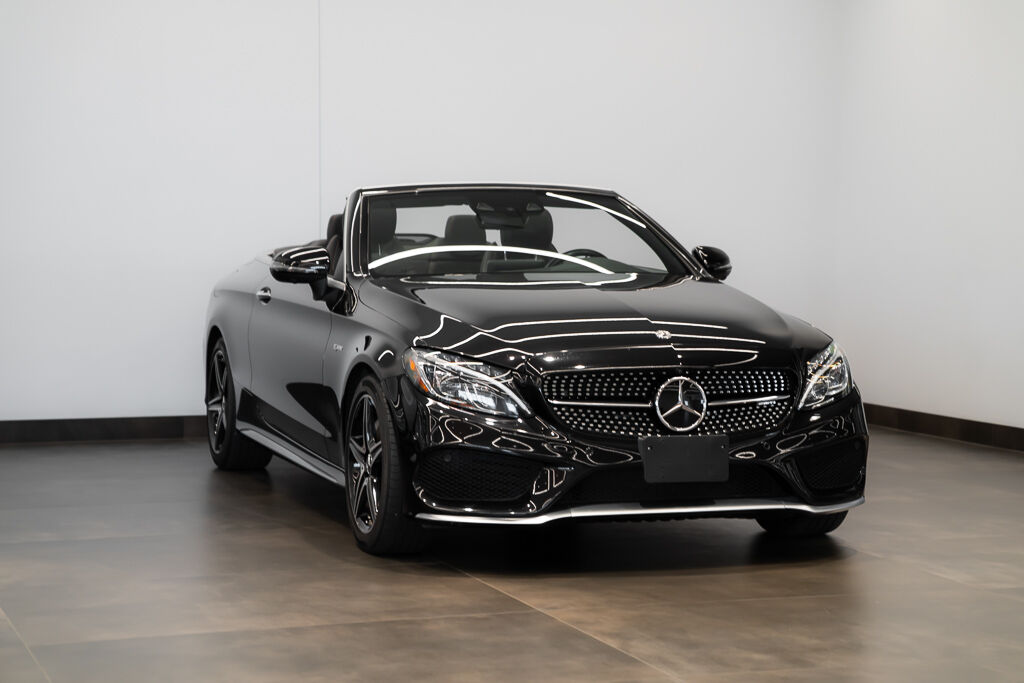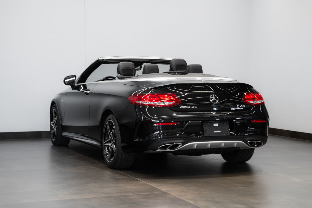 The 2018 Mercedes-AMG C 43 4MATIC Cabriolet is a luxury performance convertible powered by a 3.0L twin-turbo V6 producing 362 hp and 384 lb-ft of torque, paired with a 9-speed AMG SpeedShift automatic and rear-biased 4MATIC all-wheel drive. It accelerates from 0–60 mph in about 4.7 seconds and offers a top speed of 155 mph, blending sharp AMG handling with open-top driving comfort. With seating for four, refined interior details, and a balance of performance and everyday usability, it delivers both style and excitement in a versatile package.