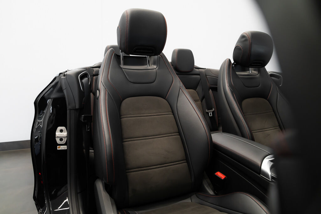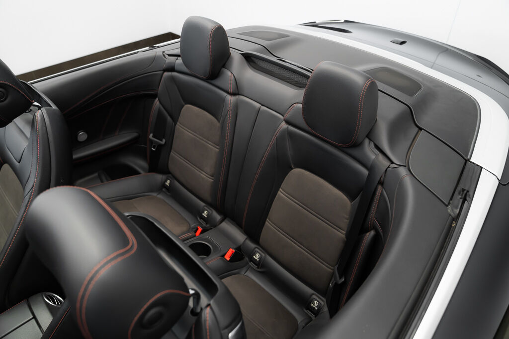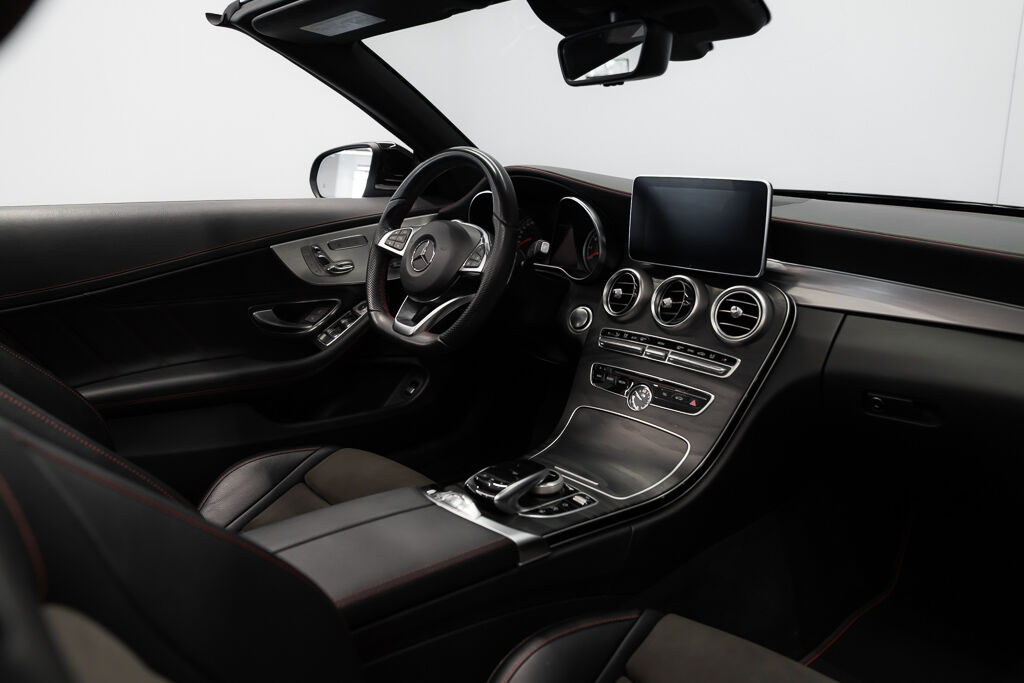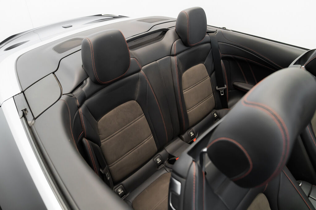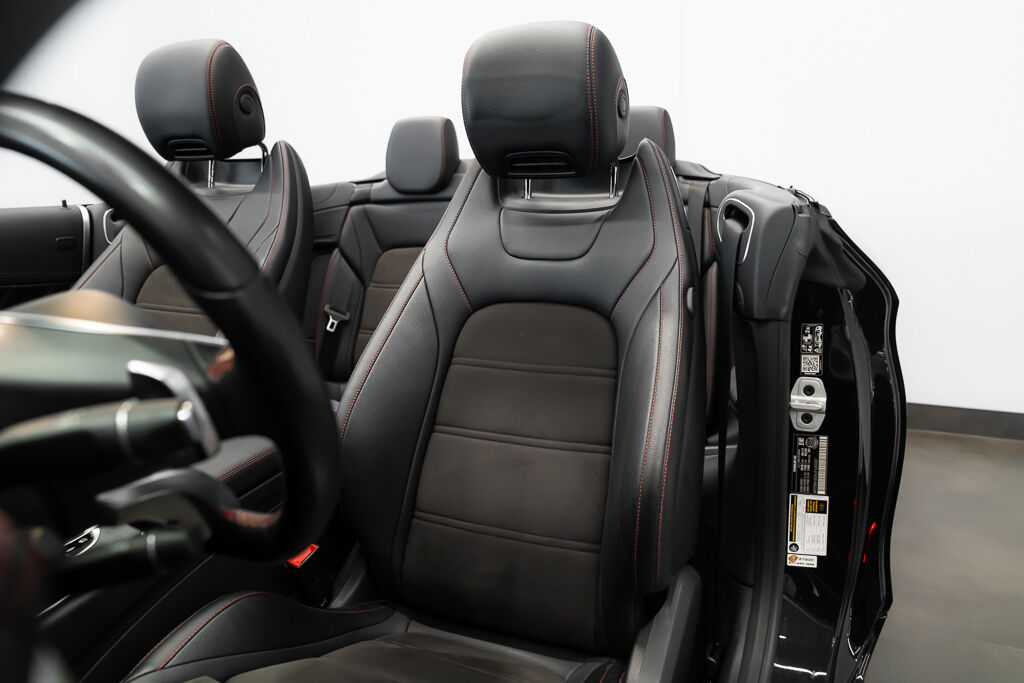 The 2018 Mercedes-AMG C 43 4MATIC Cabriolet is a luxury performance convertible powered by a 3.0L twin-turbo V6 producing 362 hp and 384 lb-ft of torque, paired with a 9-speed AMG SpeedShift automatic and rear-biased 4MATIC all-wheel drive. It accelerates from 0–60 mph in about 4.7 seconds and offers a top speed of 155 mph, blending sharp AMG handling with open-top driving comfort. With seating for four, refined interior details, and a balance of performance and everyday usability, it delivers both style and excitement in a versatile package.