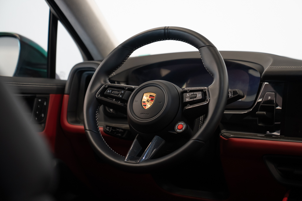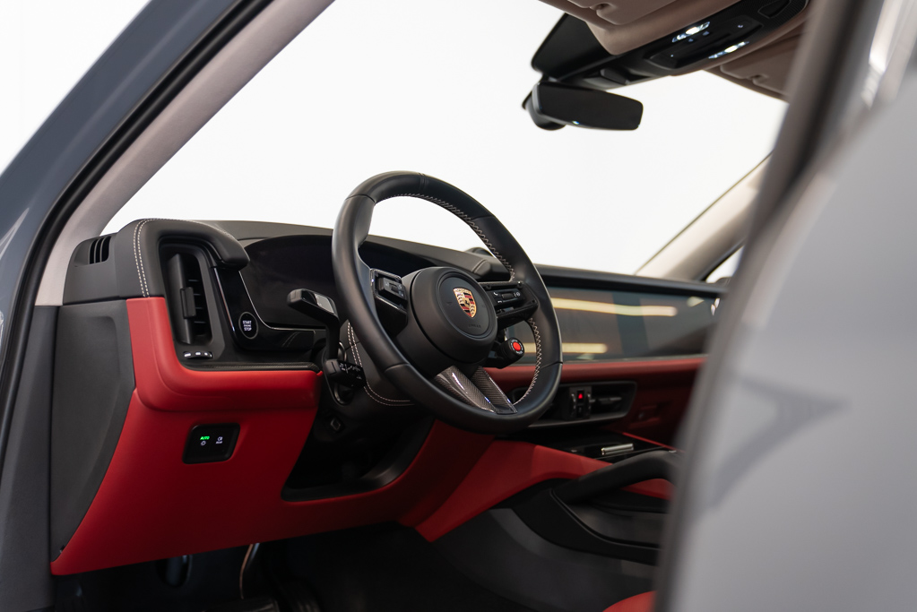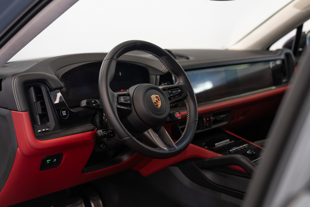 À l'extérieur, ce Cayenne arbore une élégante couleur grise et des finitions en fibre de carbone qui soulignent son allure sportive. Les phares à DEL et les feux de route automatiques garantissent une visibilité optimale, tandis que les capteurs d'aide au stationnement et la caméra de recul facilitent vos manœuvres.