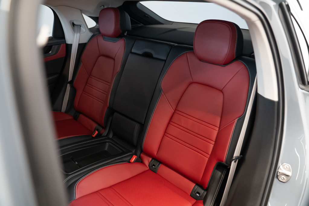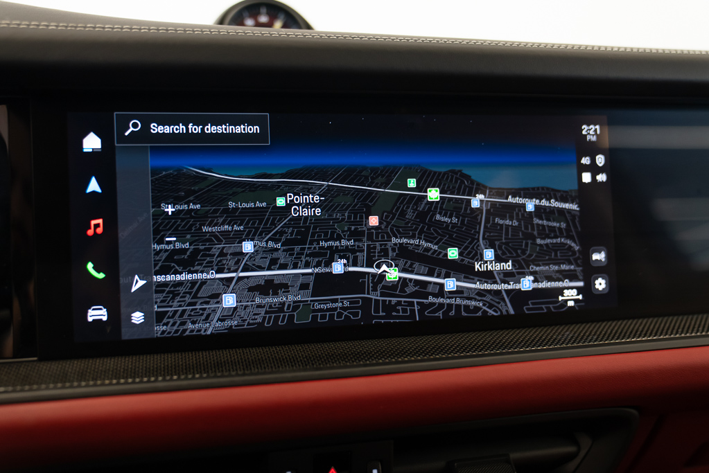 Son intérieur luxueux en Race-Tex noir est équipé de sièges chauffants pour le conducteur et le passager, ainsi que d'une climatisation automatique à deux zones pour un confort optimal. Profitez de la technologie de pointe avec le système de navigation intégré à commande vocale, la connectivité sans fil pour téléphone, et la visualisation tête haute.