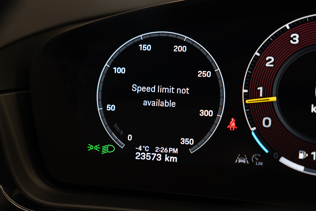 Instruments -comprend : indicateur de vitesse, odomètre, voltmètre, pression d'huile, température du liquide de refroidissement du moteur, tachymètre, inclinomètre, indicateur de suralimentation, niveau d'huile, température d'huile, compteur journalier et ordinateur de voyage