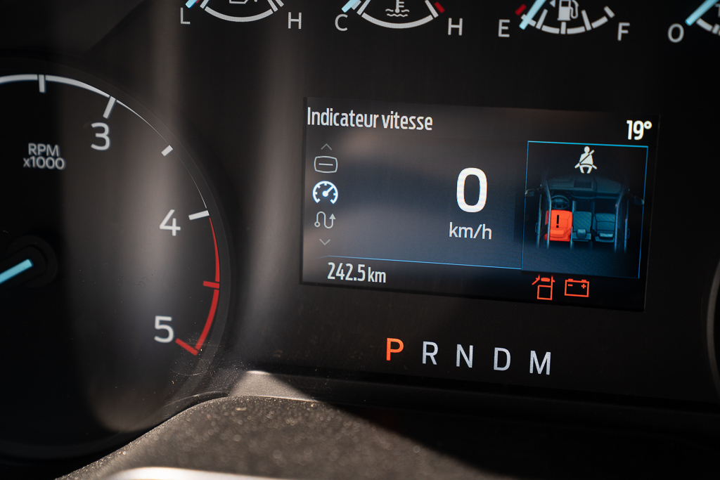 instruments -comprend : indicateur de vitesse, odomètre, pression d'huile, température du liquide de refroidissement du moteur, tachymètre, température du liquide de transmission, horomètre, compteur journalier et ordinateur de voyage