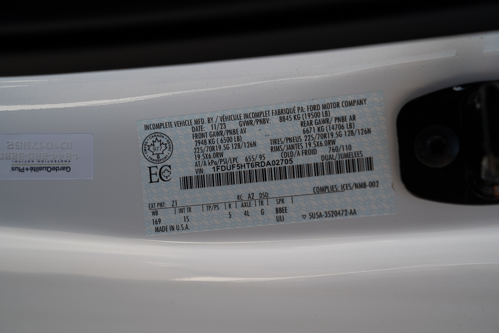 Le Super Duty F-550 est doté de nombreuses options pratiques, telles que la traction intégrale temporaire, un réservoir de carburant de 151,4 L, et une capacité de charge utile maximale de 4 958 kg. Pour votre confort, il propose des sièges en vinyle résistant, un système SYNC 4 avec écran tactile de 8 pouces, et la compatibilité Apple CarPlay et Android Auto. La sécurité n'est pas en reste avec des caractéristiques comme l'assistance précollision, l'avertisseur de sortie de voie et les rideaux gonflables Safety Canopy System.