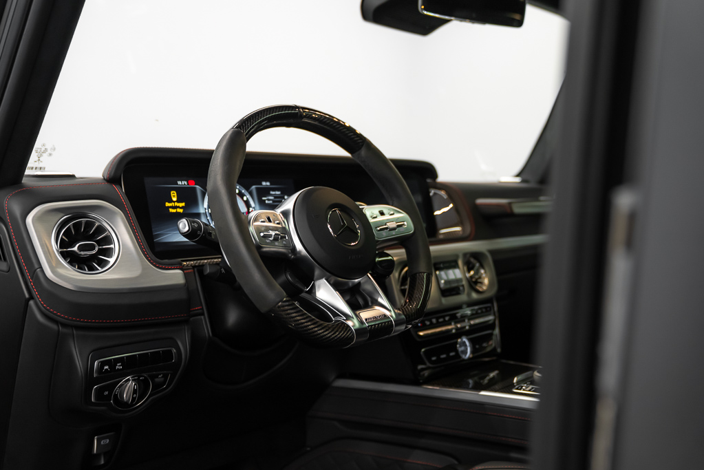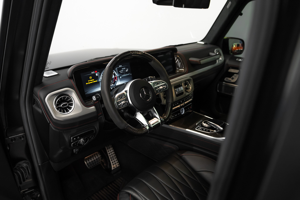 L'extérieur noir élégant est complété par des phares à DEL automatiques, des marchepieds et des pneus de 21 pouces, soulignant le caractère distinctif de ce modèle. Ce Mercedes-Benz G-Class est une opportunité rare pour les amateurs de véhicules haut de gamme.
