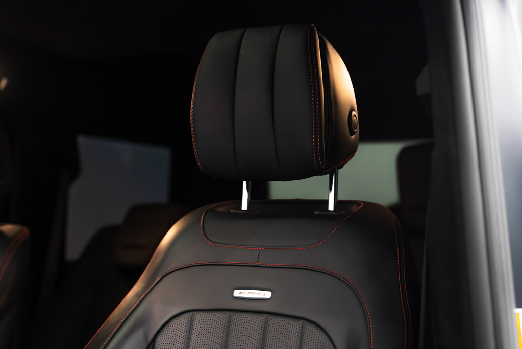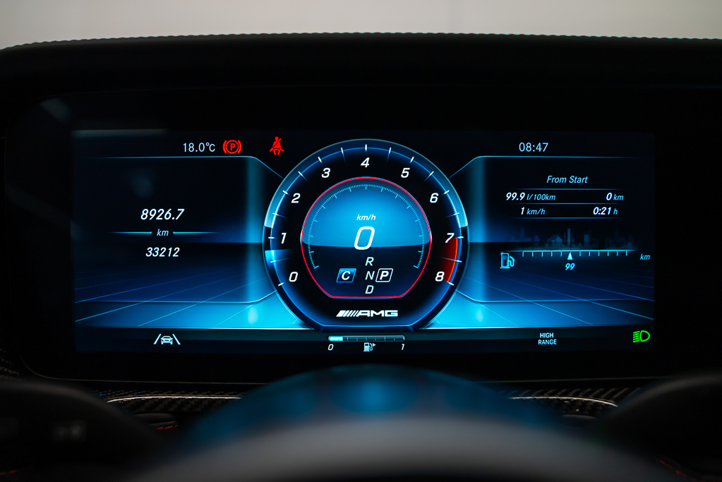 L'intérieur raffiné en cuir Nappa noir accueille confortablement quatre passagers et est équipé de technologies de pointe telles que la chaîne audio Burmester à 15 haut-parleurs, un système de navigation intégré à commande vocale, et un toit ouvrant vitré coulissant. La sécurité n'est pas en reste avec des fonctionnalités comme l'aide active de régulation de distance DISTRONIC, la surveillance des angles morts Blind Spot Assist, et un système de caméras à vue aérienne pour faciliter le stationnement.