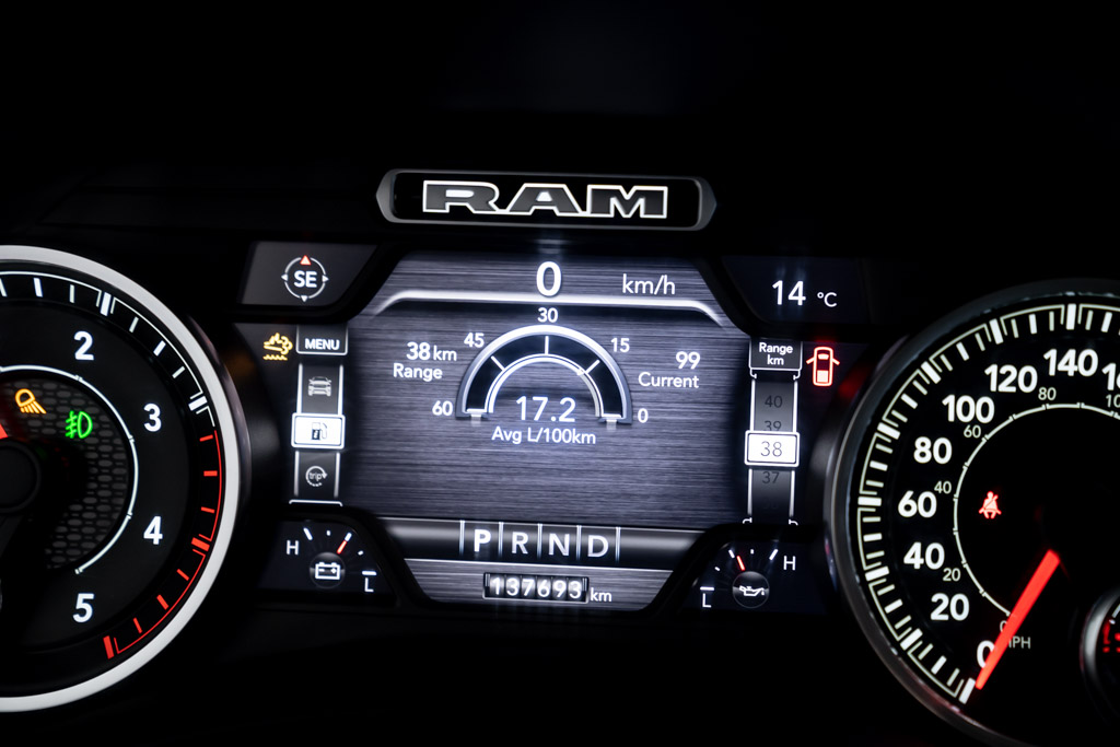 instruments -comprend : indicateur de vitesse, odomètre, voltmètre, pression d'huile, température du liquide de refroidissement du moteur, tachymètre, température d'huile, température du liquide de transmission, horomètre, compteur journalier et ordinateur de voyage